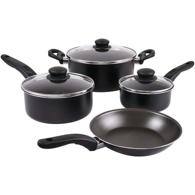 7 Piece Nonstick Cookware Set, Black